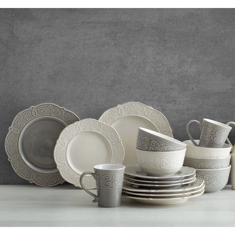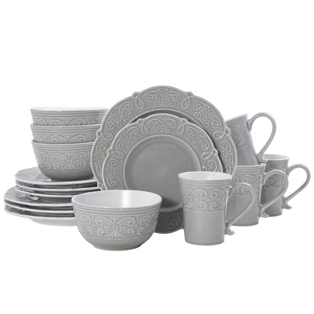 Abby Gray 16 Piece Dinnerware Set, Service For 4