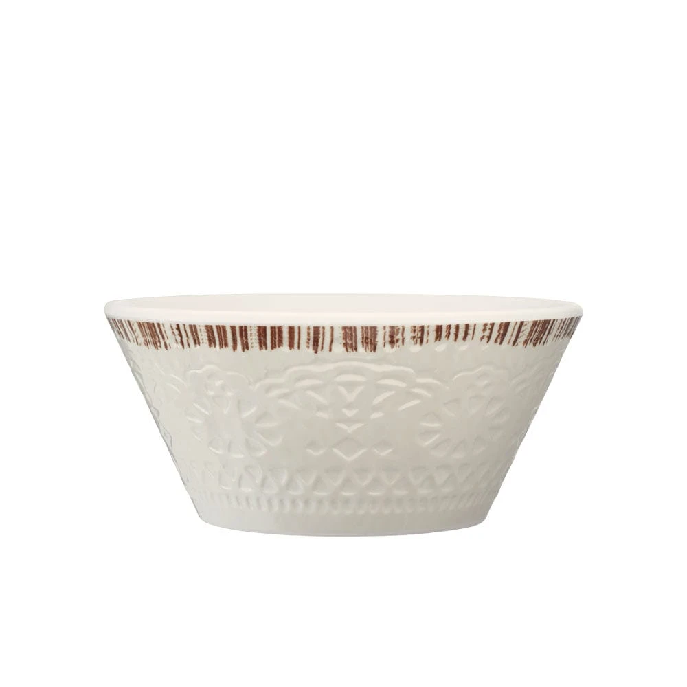 This Chateau Cream Melamine Dinnerware Set features scalloped edges with a subtle antiqued accent color, a debossed, delicate lace-inspired design on the surface, and you won’t have to worry about it breaking, melamine is hardworking, durable and virtually indestructible, making it a natural for entertaining, especially outdoors.