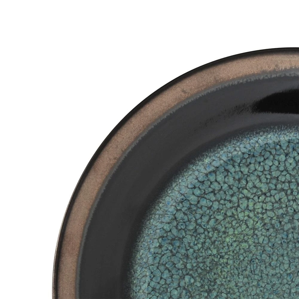 Crafted of Stoneware, featuring a reactive glaze. Due to the nature and hand-crafted qualities of reactive glaze, no two pieces are exactly alike and will exhibit unique variations in color and pattern. Product may slightly differ from image shown. This salad plate is great for salads, but can also be used for a sandwich and chips, dessert or a snack. Microwave and dishwasher safe. Salad plate measures 8-1/2 inch diameter.