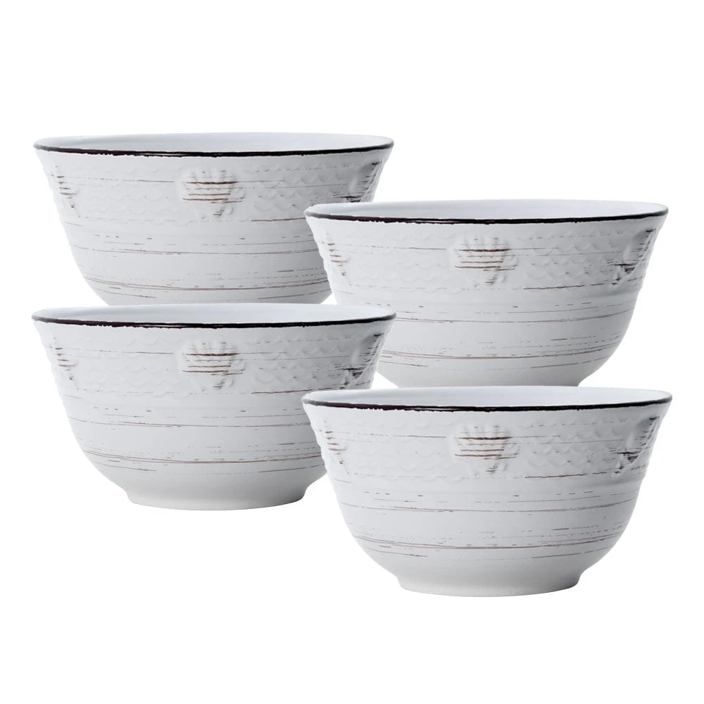 Trellis Coastal White Set Of 4 Soup Cereal Bowls