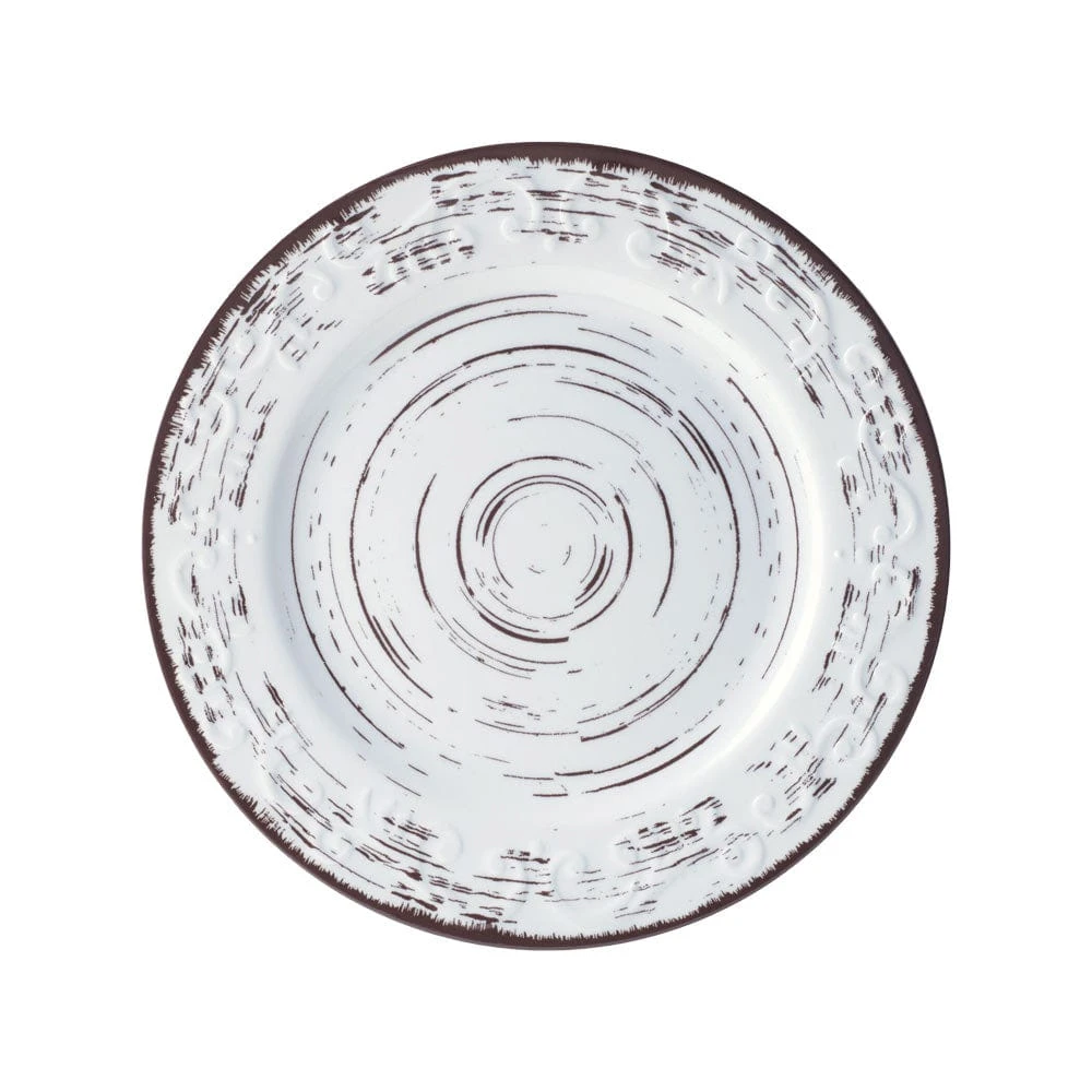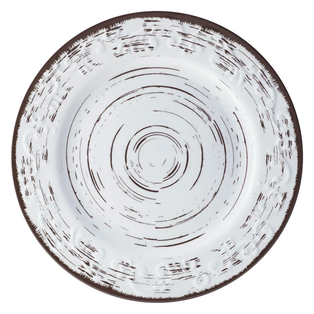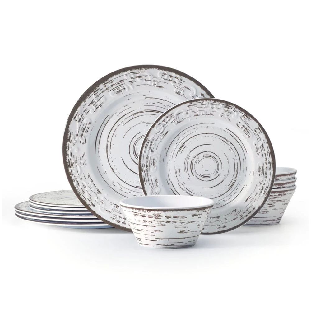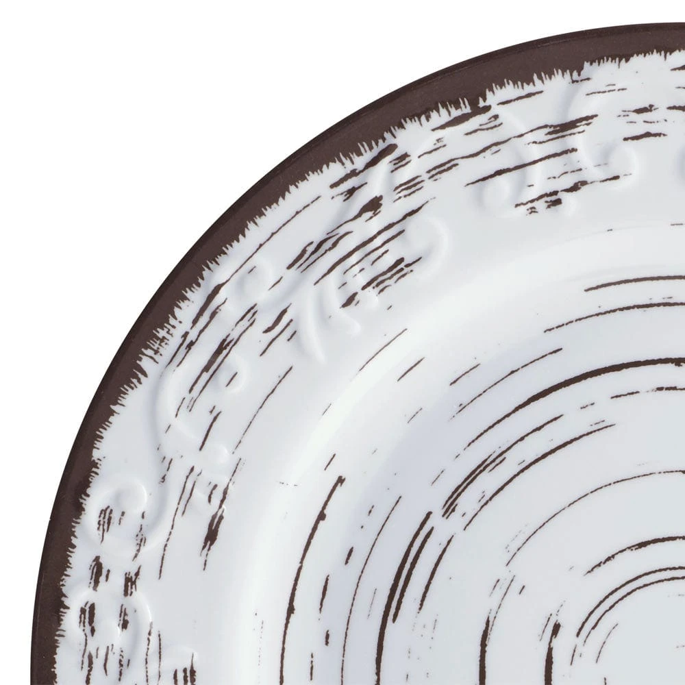 This Trellis White Melamine Dinnerware Set features a subtle scroll pattern, accented by dark striations that give it the appearance of being weathered by the elements, and you won’t have to worry about it breaking, melamine is hardworking, durable and virtually indestructible, making it a natural for entertaining, especially outdoors.