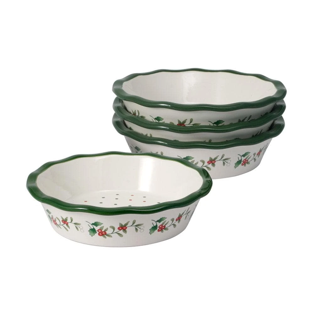 This Set of 4 Mini Pie Plates are perfect for creating mini pies and tarts. Constructed of stoneware. Microwave, oven and dishwasher safe. Oven safe up to 450°F. Set of 4 mini pie plates, each measures 6 inch diameter x 1-1/4 inch deep and have an 11 ounce capacity.